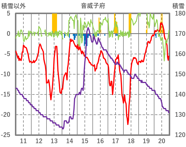 | 日 | 時 | 気温 | 降水 | 風向/風速 | 日照 | 積雪 | 降雪 |