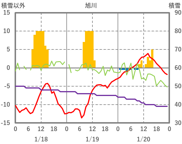 | 日 | 時 | 気温 | 降水 | 風向/風速 | 日照 | 積雪 | 降雪 |