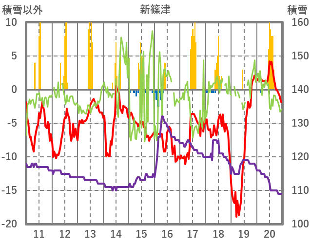| 日 | 時 | 気温 | 降水 | 風向/風速 | 日照 | 積雪 | 降雪 |