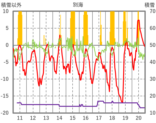 | 日 | 時 | 気温 | 降水 | 風向/風速 | 日照 | 積雪 | 降雪 |