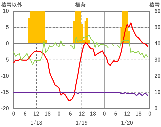 | 日 | 時 | 気温 | 降水 | 風向/風速 | 日照 | 積雪 | 降雪 |