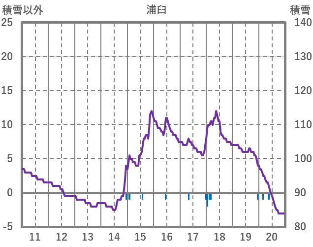 | 日 | 時 | 気温 | 降水 | 風向/風速 | 日照 | 積雪 | 降雪 |