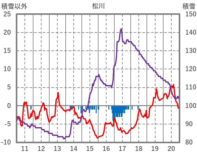 | 日 | 時 | 気温 | 降水 | 風向/風速 | 日照 | 積雪 | 降雪 |