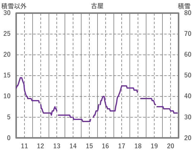 | 日 | 時 | 気温 | 降水 | 風向/風速 | 日照 | 積雪 | 降雪 |