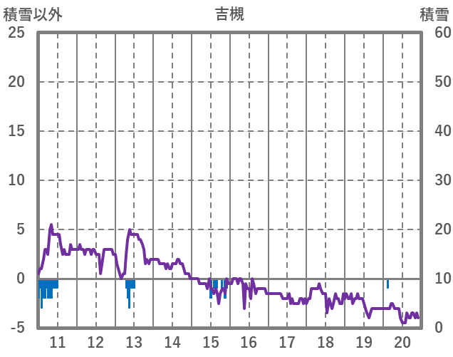 | 日 | 時 | 気温 | 降水 | 風向/風速 | 日照 | 積雪 | 降雪 |