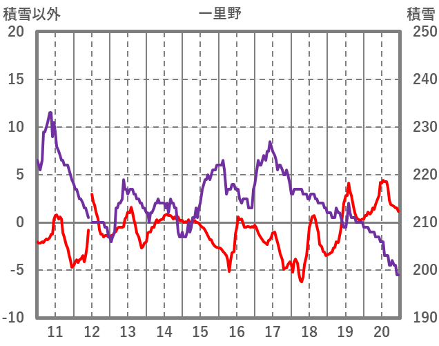| 日 | 時 | 気温 | 降水 | 風向/風速 | 日照 | 積雪 | 降雪 |