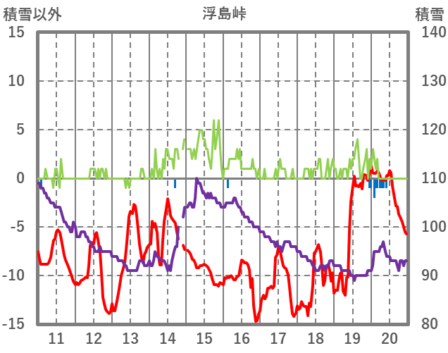 | 日 | 時 | 気温 | 降水 | 風向/風速 | 日照 | 積雪 | 降雪 |