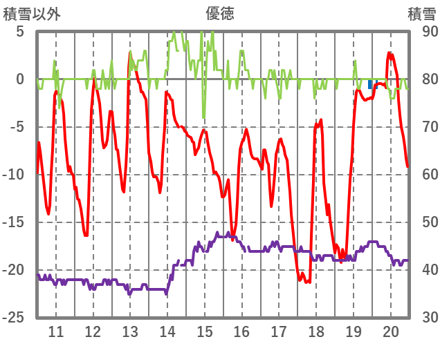 | 日 | 時 | 気温 | 降水 | 風向/風速 | 日照 | 積雪 | 降雪 |
