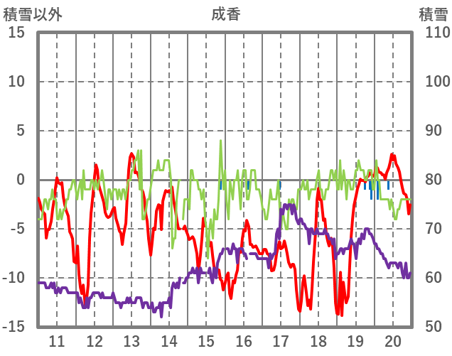 | 日 | 時 | 気温 | 降水 | 風向/風速 | 日照 | 積雪 | 降雪 |