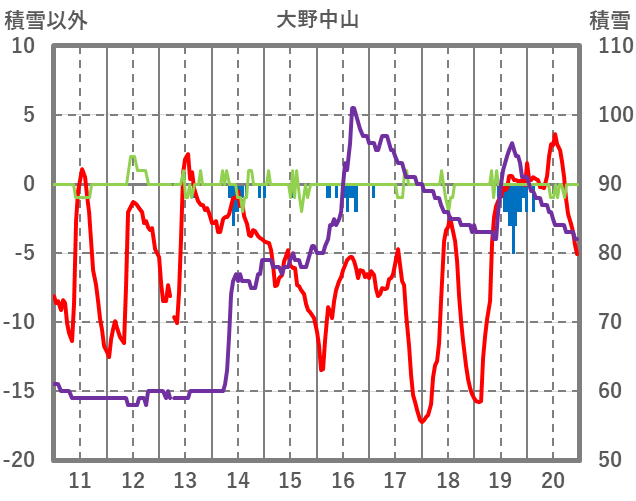| 日 | 時 | 気温 | 降水 | 風向/風速 | 日照 | 積雪 | 降雪 |
