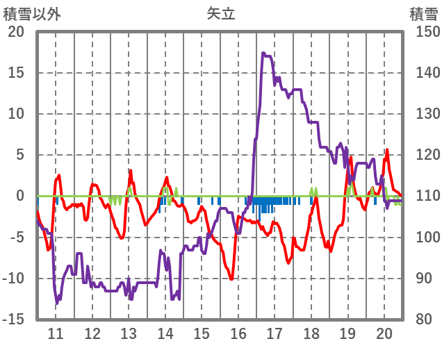 | 日 | 時 | 気温 | 降水 | 風向/風速 | 日照 | 積雪 | 降雪 |
