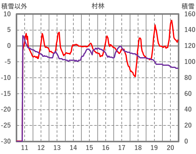 | 日 | 時 | 気温 | 降水 | 風向/風速 | 日照 | 積雪 | 降雪 |