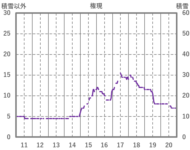 | 日 | 時 | 気温 | 降水 | 風向/風速 | 日照 | 積雪 | 降雪 |
