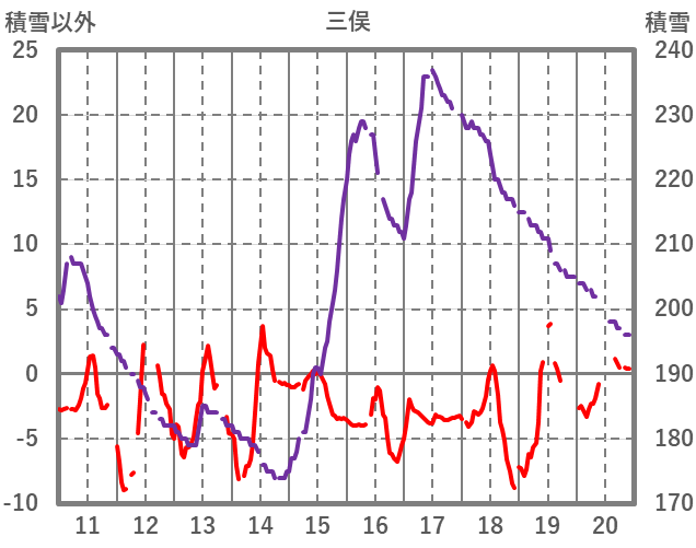 | 日 | 時 | 気温 | 降水 | 風向/風速 | 日照 | 積雪 | 降雪 |