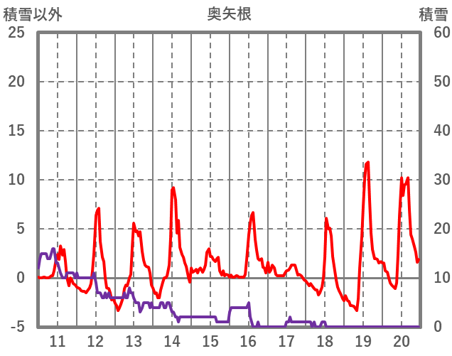 | 日 | 時 | 気温 | 降水 | 風向/風速 | 日照 | 積雪 | 降雪 |