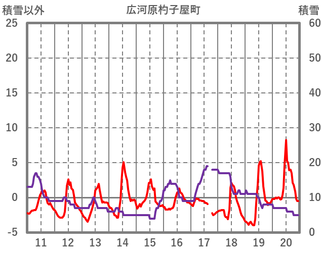 | 日 | 時 | 気温 | 降水 | 風向/風速 | 日照 | 積雪 | 降雪 |