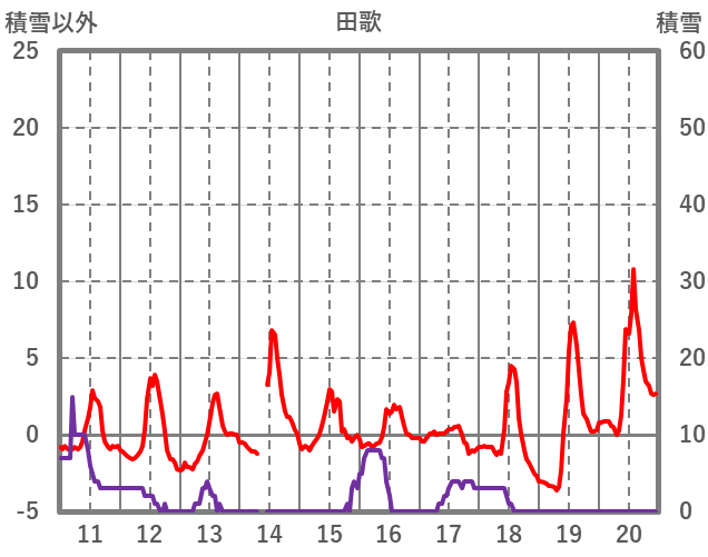 | 日 | 時 | 気温 | 降水 | 風向/風速 | 日照 | 積雪 | 降雪 |