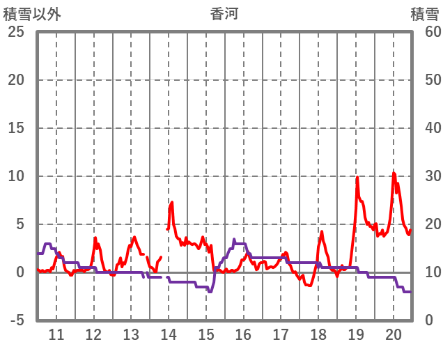 | 日 | 時 | 気温 | 降水 | 風向/風速 | 日照 | 積雪 | 降雪 |