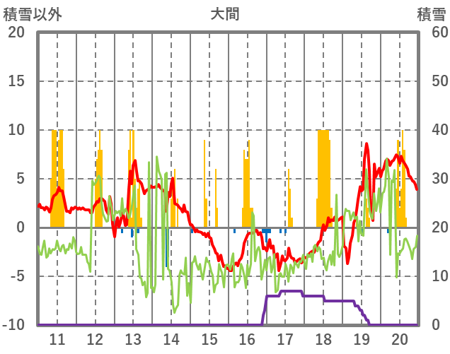 | 日 | 時 | 気温 | 降水 | 風向/風速 | 日照 | 積雪 | 降雪 |