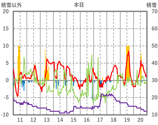 | 日 | 時 | 気温 | 降水 | 風向/風速 | 日照 | 積雪 | 降雪 |