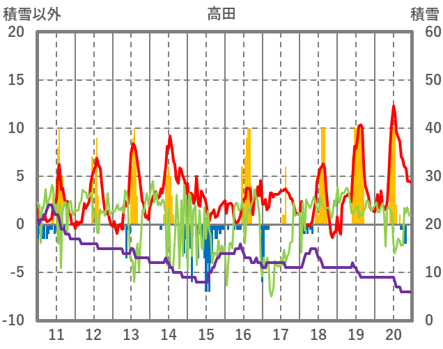 | 日 | 時 | 気温 | 降水 | 風向/風速 | 日照 | 積雪 | 降雪 |