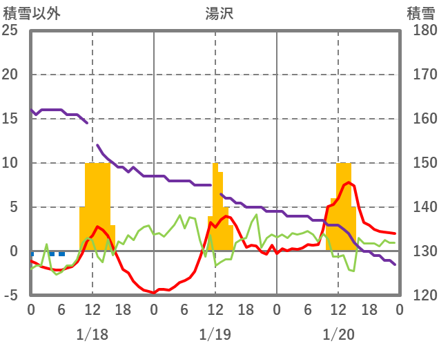 | 日 | 時 | 気温 | 降水 | 風向/風速 | 日照 | 積雪 | 降雪 |