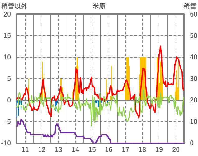 | 日 | 時 | 気温 | 降水 | 風向/風速 | 日照 | 積雪 | 降雪 |