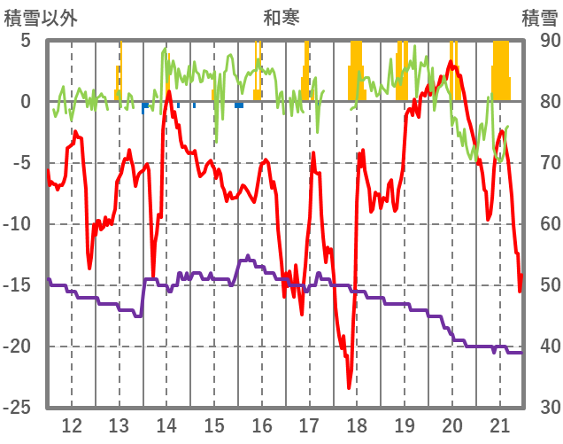 | 日 | 時 | 気温 | 降水 | 風向/風速 | 日照 | 積雪 | 降雪 |