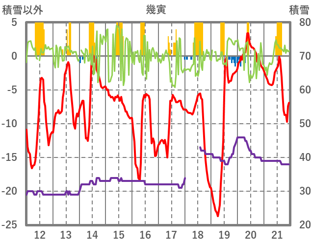 | 日 | 時 | 気温 | 降水 | 風向/風速 | 日照 | 積雪 | 降雪 |