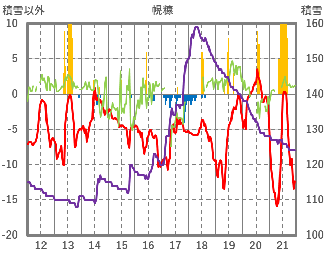 | 日 | 時 | 気温 | 降水 | 風向/風速 | 日照 | 積雪 | 降雪 |