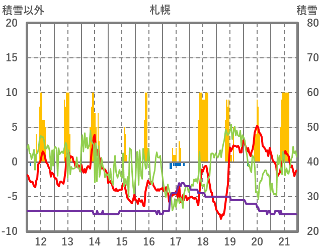 | 日 | 時 | 気温 | 降水 | 風向/風速 | 日照 | 積雪 | 降雪 |