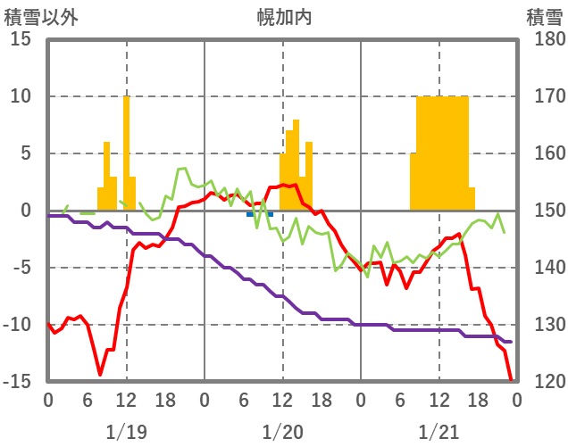 | 日 | 時 | 気温 | 降水 | 風向/風速 | 日照 | 積雪 | 降雪 |