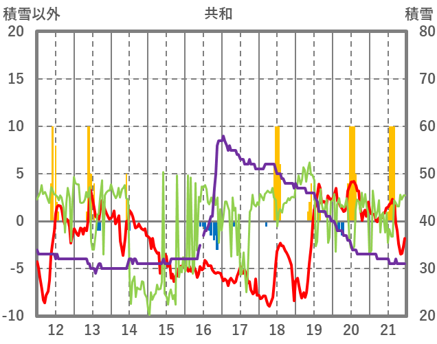 | 日 | 時 | 気温 | 降水 | 風向/風速 | 日照 | 積雪 | 降雪 |