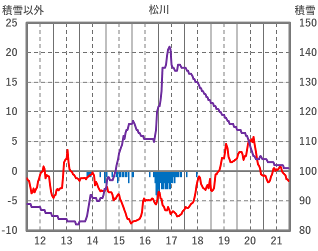 | 日 | 時 | 気温 | 降水 | 風向/風速 | 日照 | 積雪 | 降雪 |