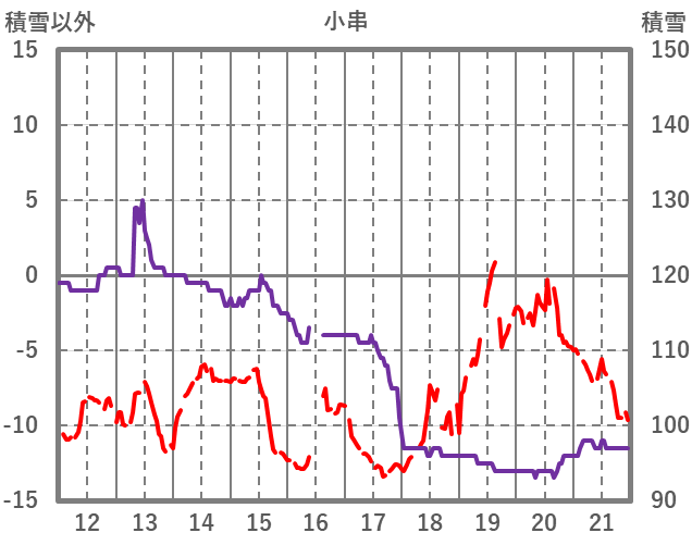 | 日 | 時 | 気温 | 降水 | 風向/風速 | 日照 | 積雪 | 降雪 |
