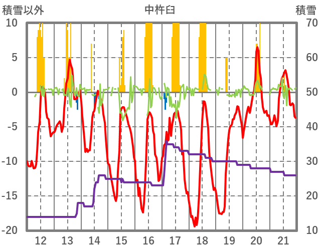 | 日 | 時 | 気温 | 降水 | 風向/風速 | 日照 | 積雪 | 降雪 |