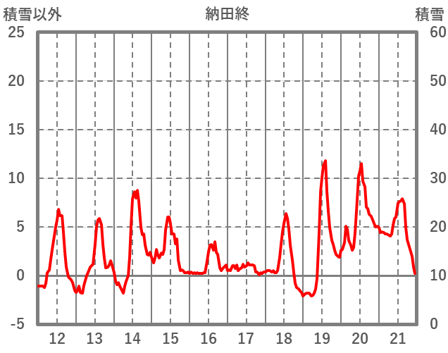 | 日 | 時 | 気温 | 降水 | 風向/風速 | 日照 | 積雪 | 降雪 |