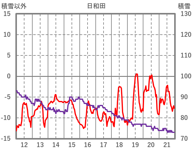 | 日 | 時 | 気温 | 降水 | 風向/風速 | 日照 | 積雪 | 降雪 |