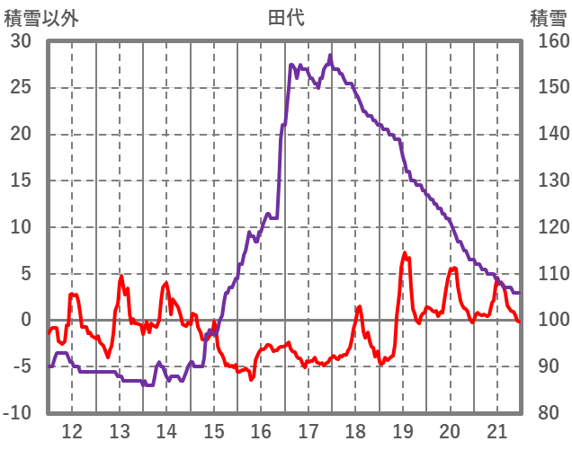 | 日 | 時 | 気温 | 降水 | 風向/風速 | 日照 | 積雪 | 降雪 |