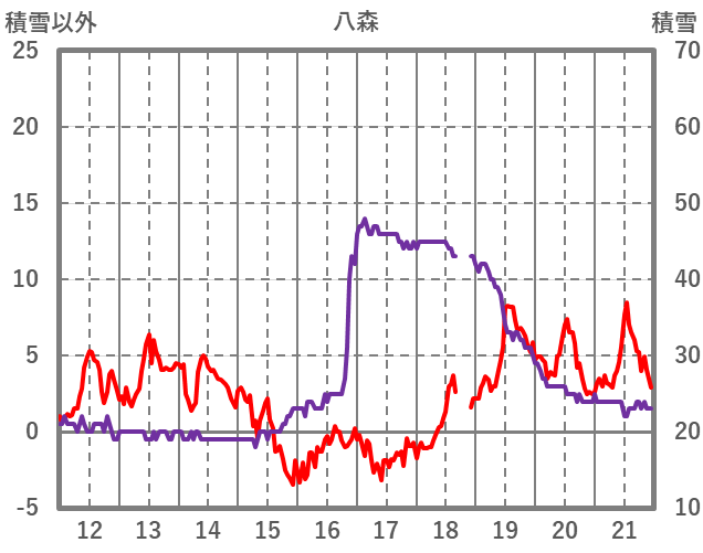 | 日 | 時 | 気温 | 降水 | 風向/風速 | 日照 | 積雪 | 降雪 |