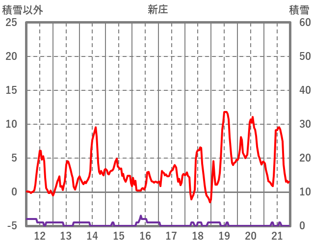 | 日 | 時 | 気温 | 降水 | 風向/風速 | 日照 | 積雪 | 降雪 |