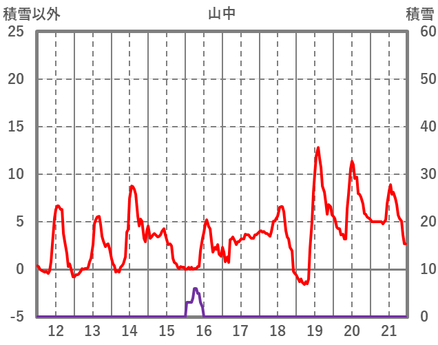 | 日 | 時 | 気温 | 降水 | 風向/風速 | 日照 | 積雪 | 降雪 |