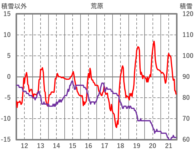 | 日 | 時 | 気温 | 降水 | 風向/風速 | 日照 | 積雪 | 降雪 |