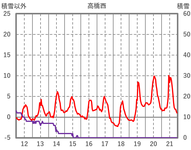 | 日 | 時 | 気温 | 降水 | 風向/風速 | 日照 | 積雪 | 降雪 |