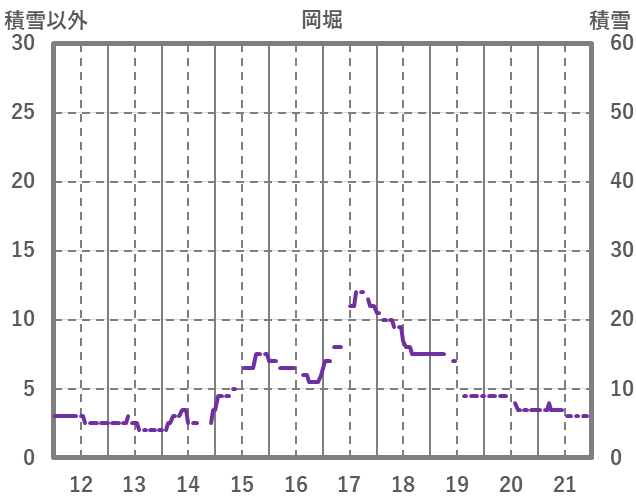| 日 | 時 | 気温 | 降水 | 風向/風速 | 日照 | 積雪 | 降雪 |