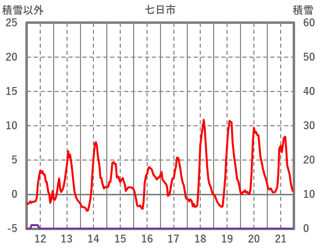 | 日 | 時 | 気温 | 降水 | 風向/風速 | 日照 | 積雪 | 降雪 |