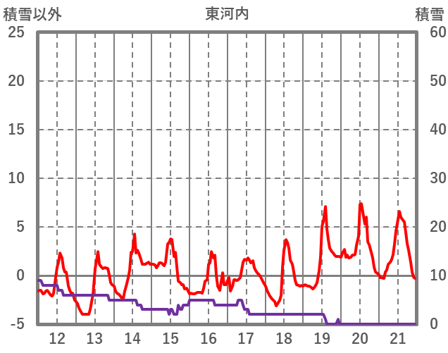 | 日 | 時 | 気温 | 降水 | 風向/風速 | 日照 | 積雪 | 降雪 |