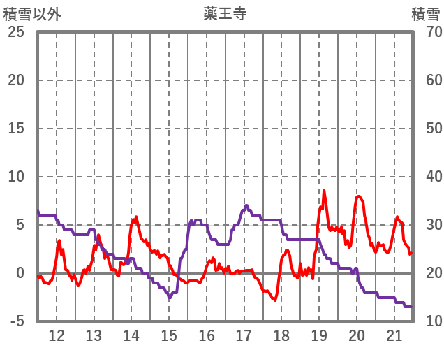 | 日 | 時 | 気温 | 降水 | 風向/風速 | 日照 | 積雪 | 降雪 |