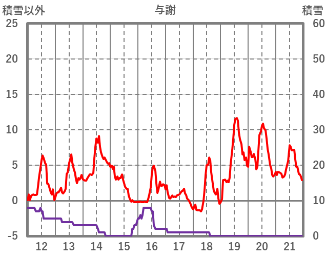 | 日 | 時 | 気温 | 降水 | 風向/風速 | 日照 | 積雪 | 降雪 |