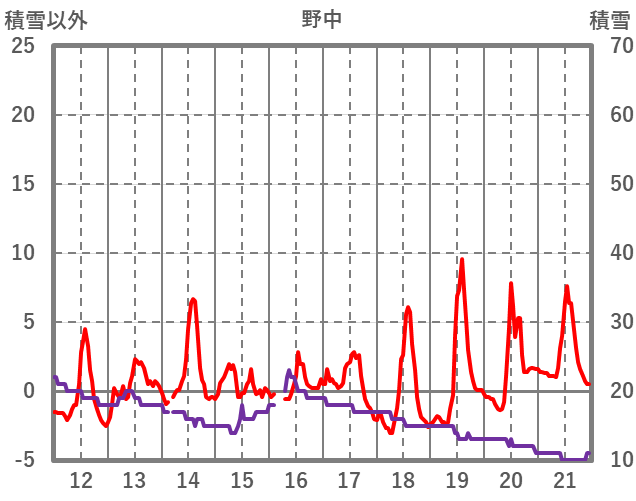 | 日 | 時 | 気温 | 降水 | 風向/風速 | 日照 | 積雪 | 降雪 |